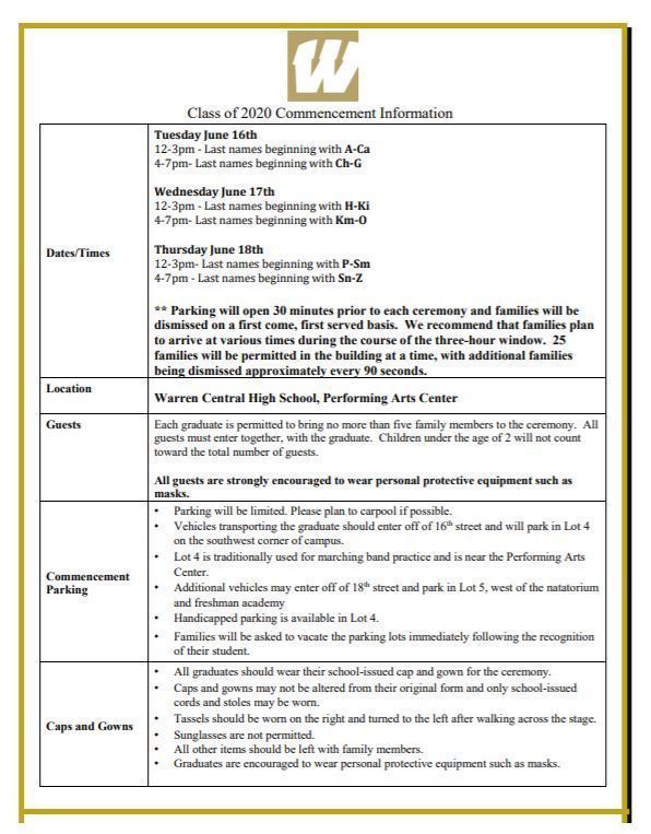 Please carefully review the details for the in-person graduation event below. This is a walk-thru event. It is critical that all participants and families follow all procedures closely to insure the safety of everyone involved.
